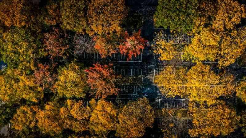 辰山植物园1号门生态停车场被称为沪上“最美停车场”,无患子、枫香树、德州栎、朴树几种植物形成的斑斓色彩让人心醉神迷。