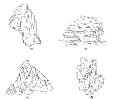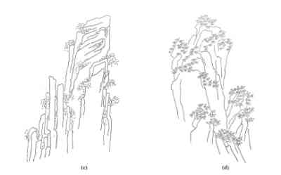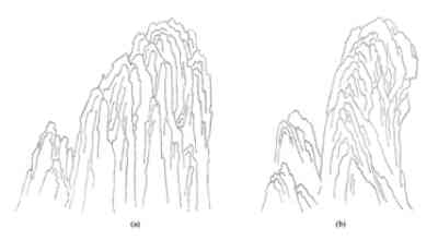 皴法是具体表现山石盆景美感的艺术手法,也是模拟岩石在自然界中日晒雨淋、长年风化的结果。皴者皱也,不同地域的山石有不同的皴法,有软线条和硬线条。制作时可以采用斧劈皴、折带皴、荷叶皴、解索皴等常用皴法。